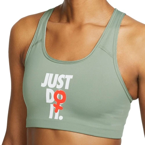 Optimaler Halt für mittlere Belastung beim Sport! Der Sport-BH Nike Rebel Swoosh JDI Bra Women mit mittlerem Halt bietet dauerhaften Tragekomfort beim Workout mit schweißableitendem Material und einer Kompressionspassform.
